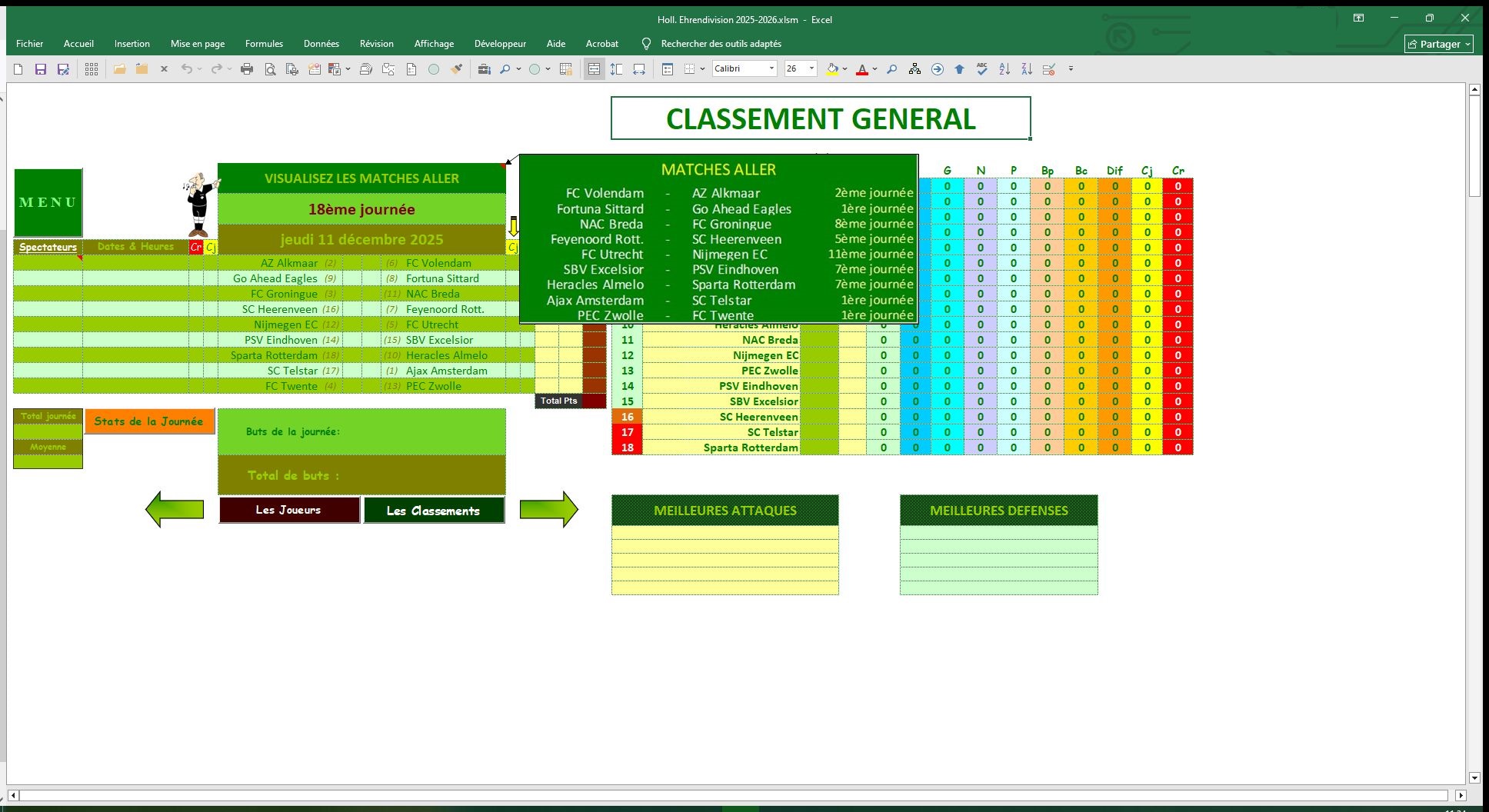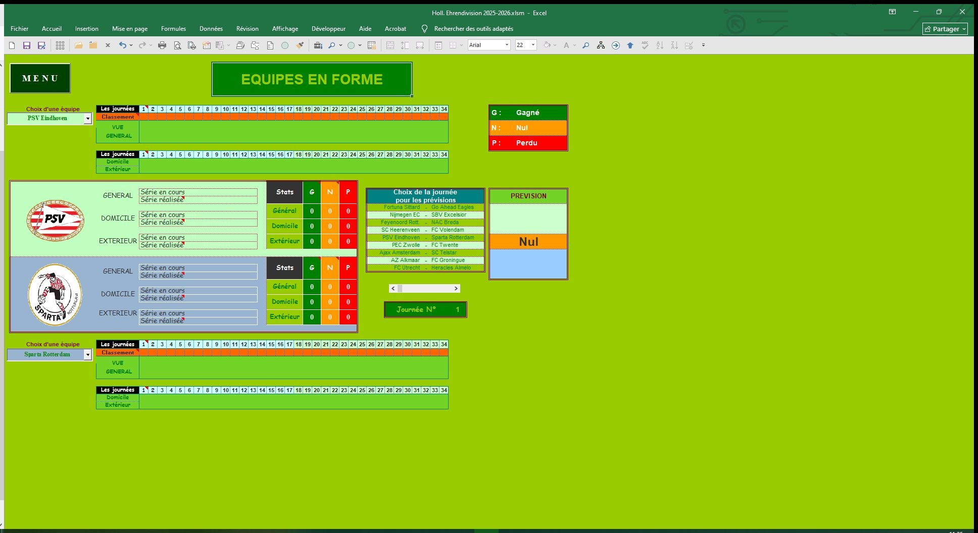 Description du fichier : Suivez le Championnat des Pays-Bas ainsi que votre Équipe favorite, avec le fichier Holl. Ehrendivision 2025-2026.Nouveautés de la saison 2025-2026 :