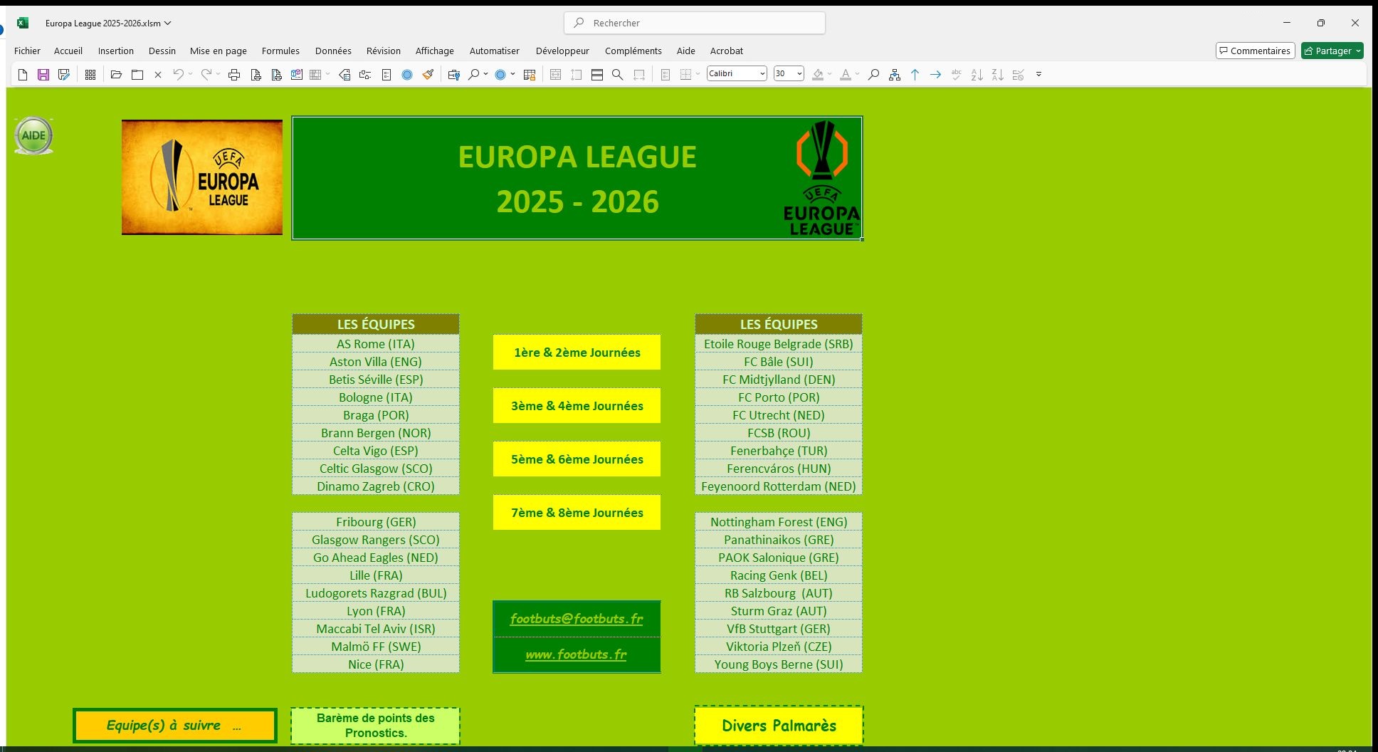 Description du fichier : Ce fichier vous permet de suivre l'Europa League 2025-2026 ainsi que vos Équipes favorites.