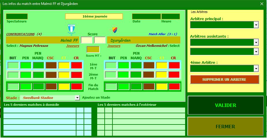 Ajout du stade de l'équipe à domicile et possibilité d'ajouter un nouveau stade en cas de match sur terrain neutre.
