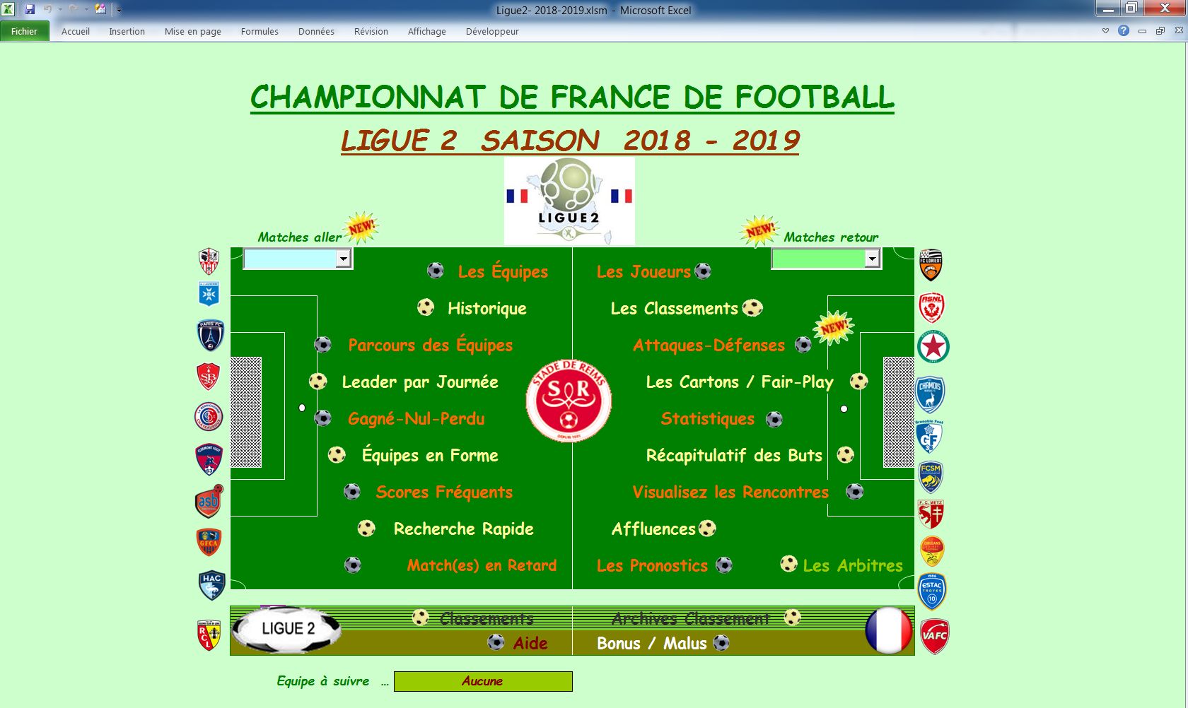 Description du fichier : Suivez le Championnat de France de Ligue 2 ainsi que votre Équipe favorite, avec le fichier Ligue2- 2018-2019.