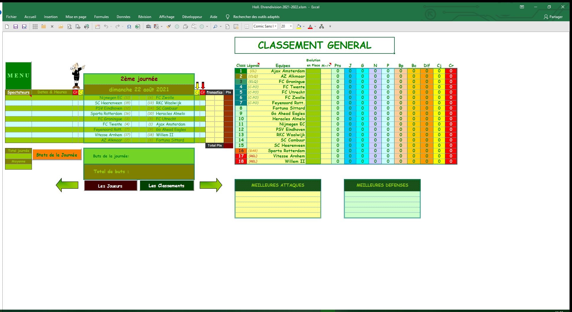Description du fichier : Suivez le Championnat des Pays-Bas ainsi que votre Équipe favorite, avec le fichier Holl. Ehrendivision 2021-2022.Nouveautés de la saison 2021-2022:
