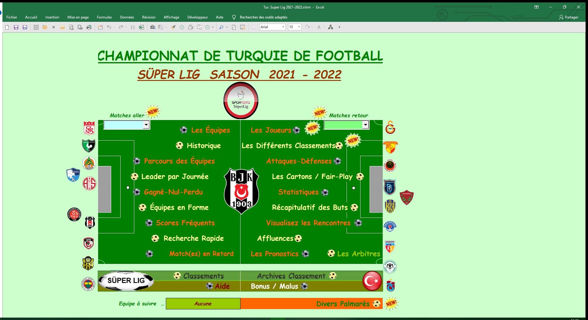 Description du fichier : Suivez le Championnat de Turquie ainsi que votre Équipe favorite, avec le fichier Tur. Super Lig 2021-2022.Nouveautés de la saison 2021-2022: